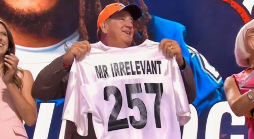 - This year’s Mr. Irrelevant, the last & 257th pick, is Khalil “Red” Murdock, linebacker from Buffalo University. Drafted by the Denver Broncos. Murdock did set an NCAA record for most career forced fumbles with 17, which was held by another Khalil: all pro Khalil Mack. Fun fact: the last four Mr. Irrelevants are still with the teams that drafted them, including San Francisco quarterback Brock Purdy.