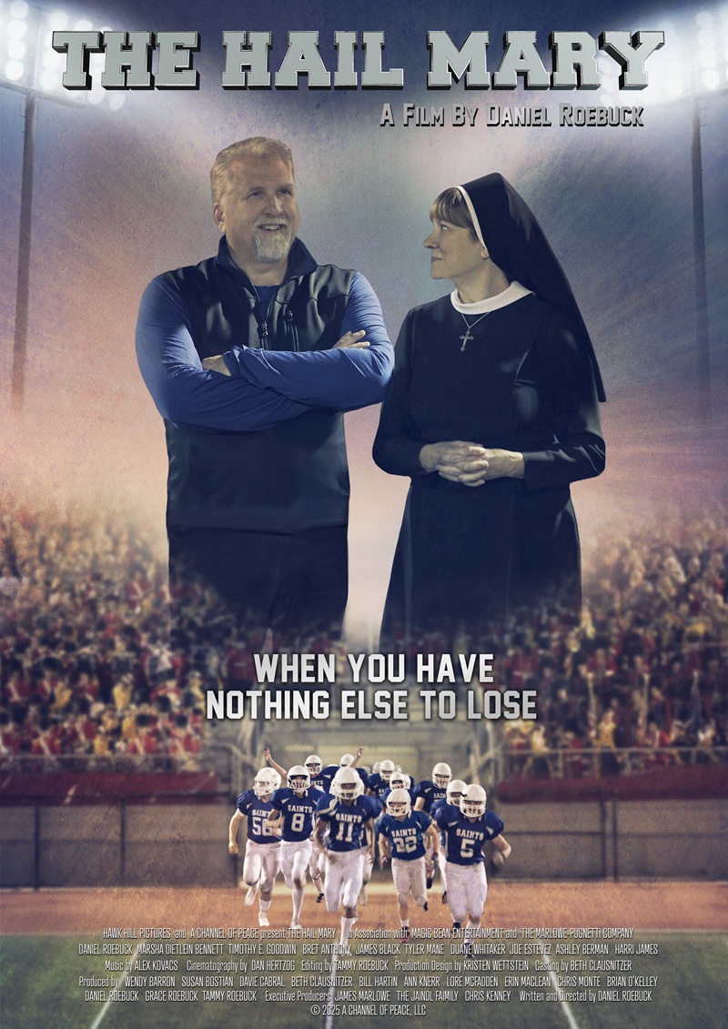 Set within a Catholic school community, The Hail Mary follows a bitter, isolated man whose life is quietly transformed when he’s reluctantly recruited to coach a struggling football team, guided by a sharp-witted nun who refuses to give up on him or the kids.