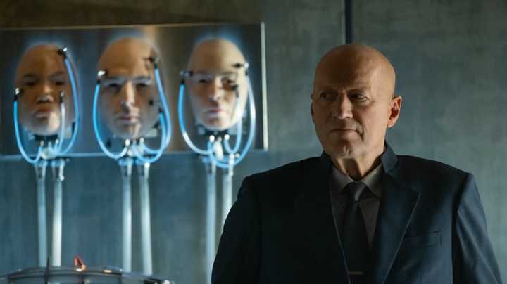 We are gradually observing hybrids evolve or malfunction. Atom Eins (Adrian Edmondson) offers Joe Hermit a job to stay with his sister, though it feels more like bribery than an offer. He emphasizes that Wendy is the property of Prodigy and that there is no universe where he gets to take her home; she isn’t really a human being anymore—she’s a synthetic.