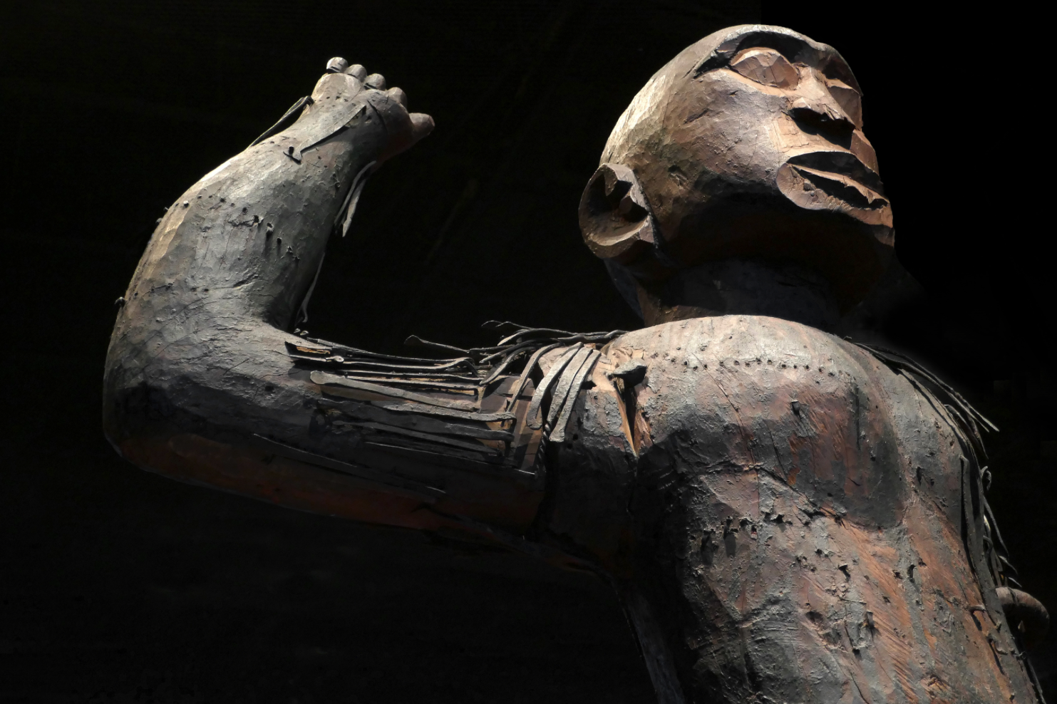 A prominent role in the film is given to the 26th art object to be repatriated, a statue that represents King Ghézo, who ruled from 1818 to 1859, shown below. A voice-over by Haitian writer Makenzy Orcel (who wrote this part of the script), playing the object, tells of the time it spent in storage at the Paris Museum, its memories of Africa and thoughts of returning to its homeland.