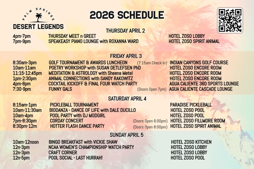 Palm Springs, CA (The Hollywood Times) 4/5/26 – From April 2–5, 2026, the desert once again came alive with laughter, music, and meaningful connection as Desert Legends Women’s Weekend returned to Palm Springs for its 4th year, delivering four unforgettable days of celebration. Centered at Hotel Zoso and expanding across iconic venues including Agua Caliente Casino Palm Springs, Indian Canyons Golf Resort, and Paradise Pickleball, this year’s event fulfilled its promise of connection, community, and joy.