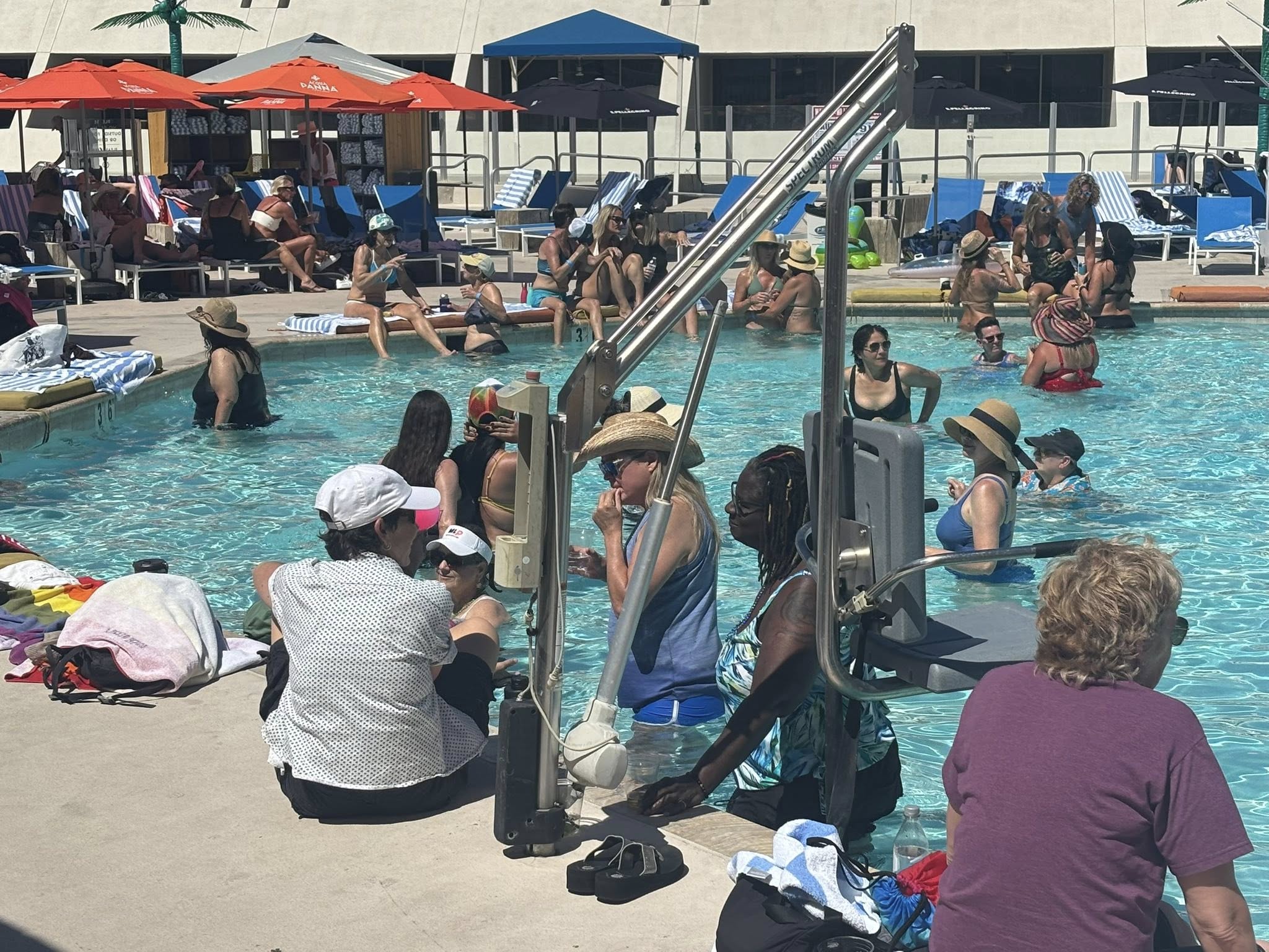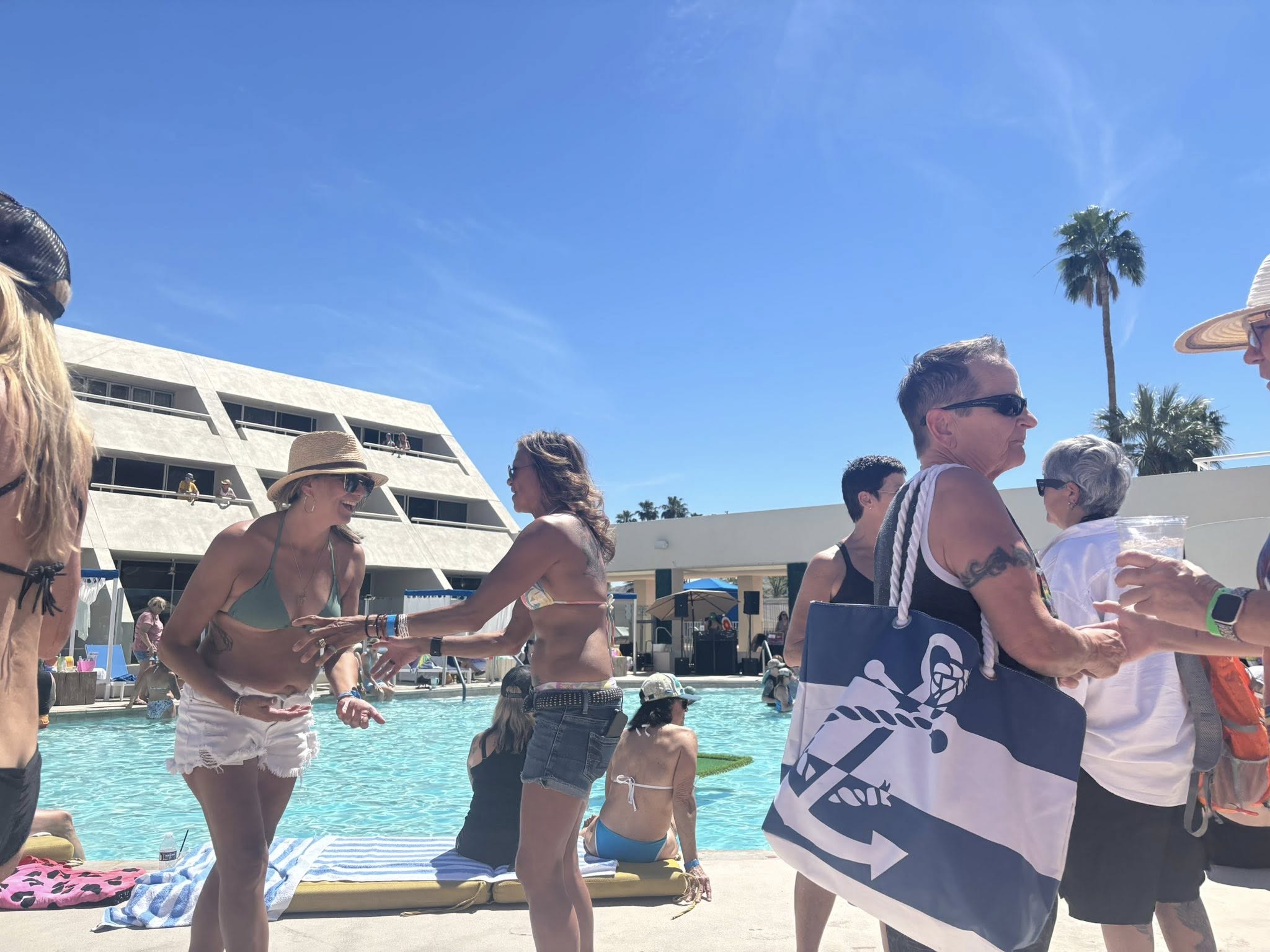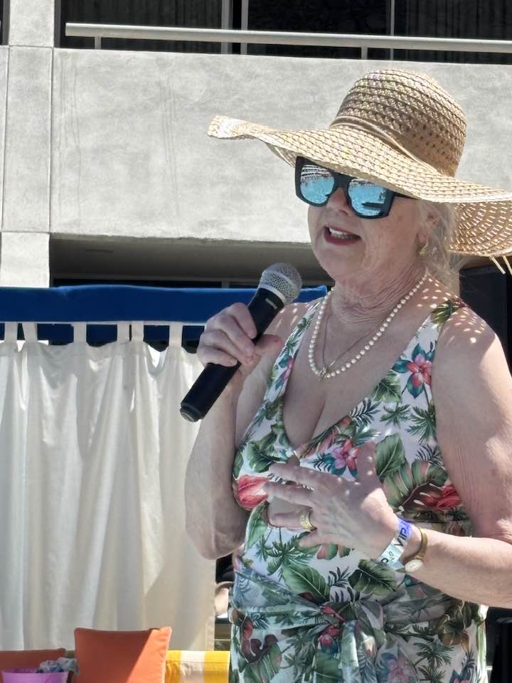 Comedian Vickie Shaw brought her Texas drawl, signature wit and charisma as host, effortlessly engaging the crowd in games, contests, and spontaneous moments of hilarity, including a memorable bit featuring the event’s lone straight male guest, who became the good-natured center of her jokes and took it all in stride. The pool deck was alive with laughter, camaraderie, and even a bit of shopping, as our colorful Desert Legends T-shirts found enthusiastic new owners throughout the afternoon.