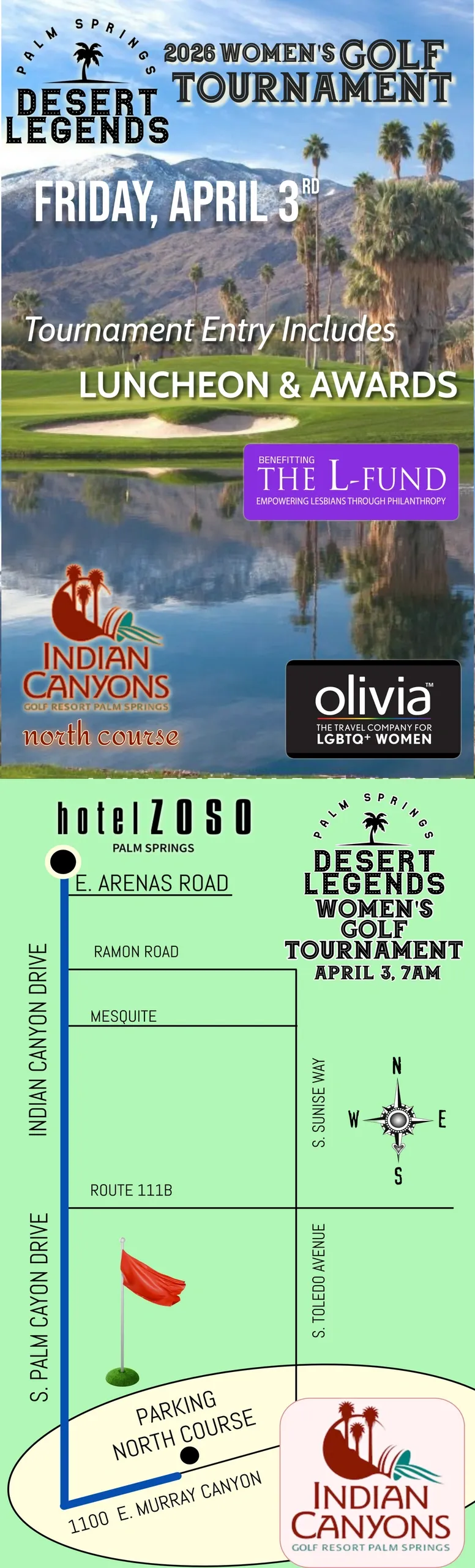 Palm Springs, CA (The Hollywood Times) 3/28/26 – As part of the upcoming Desert Legends Women’s Weekend, golf enthusiasts and community supporters will gather on April 3, 2026, for the Desert Legends Golf Tournament at the scenic Indian Canyons Golf Resort North Course. Now in its third year, the tournament continues to grow as a signature event within the Desert Legends celebration, blending friendly competition, philanthropy, and community connection.