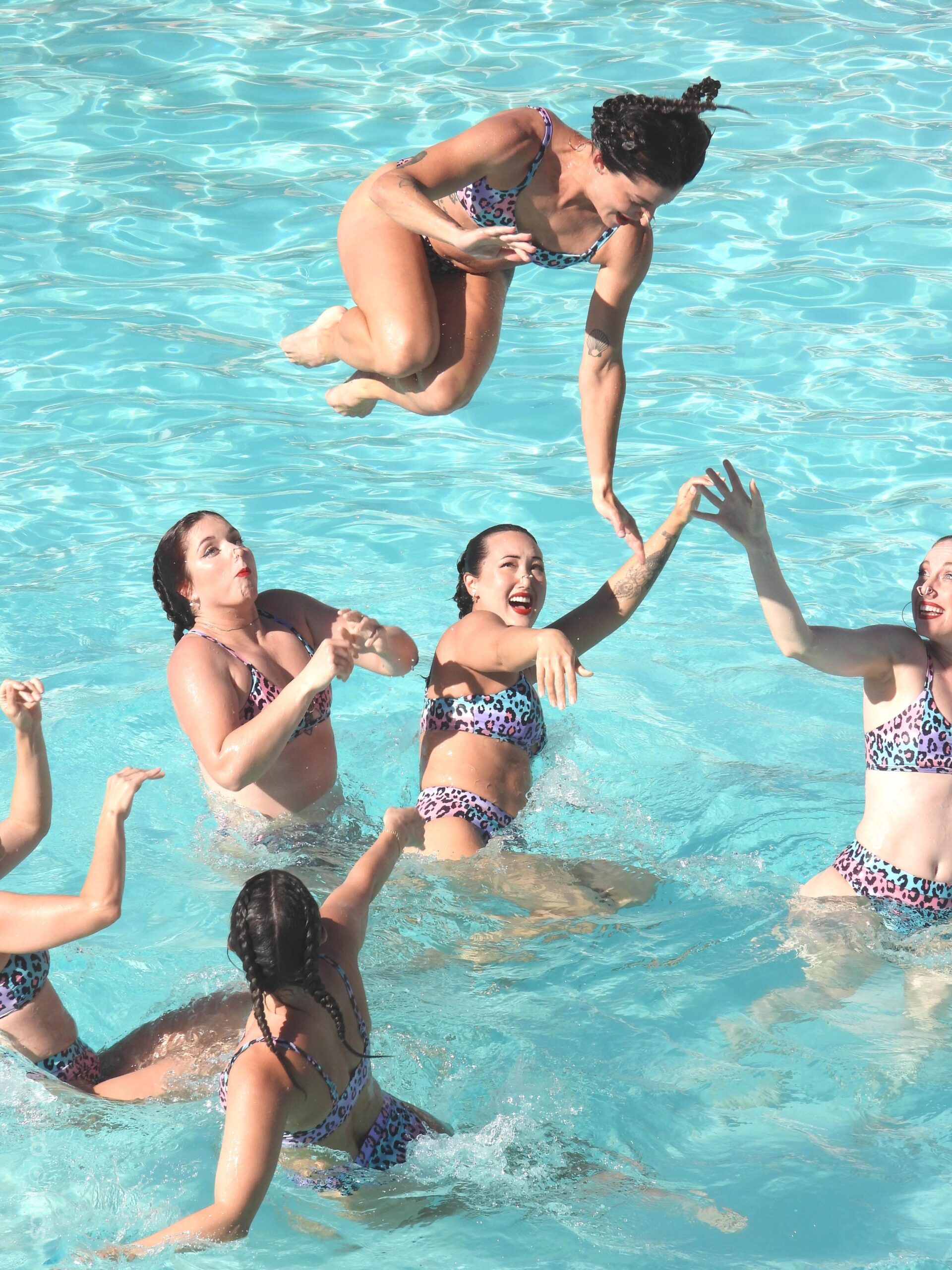 spectacle, showcasing the swimmers’ athleticism, creativity, and artistry. As they moved together in perfect harmony, the crowd watched in awe, cheering and applauding their every move.