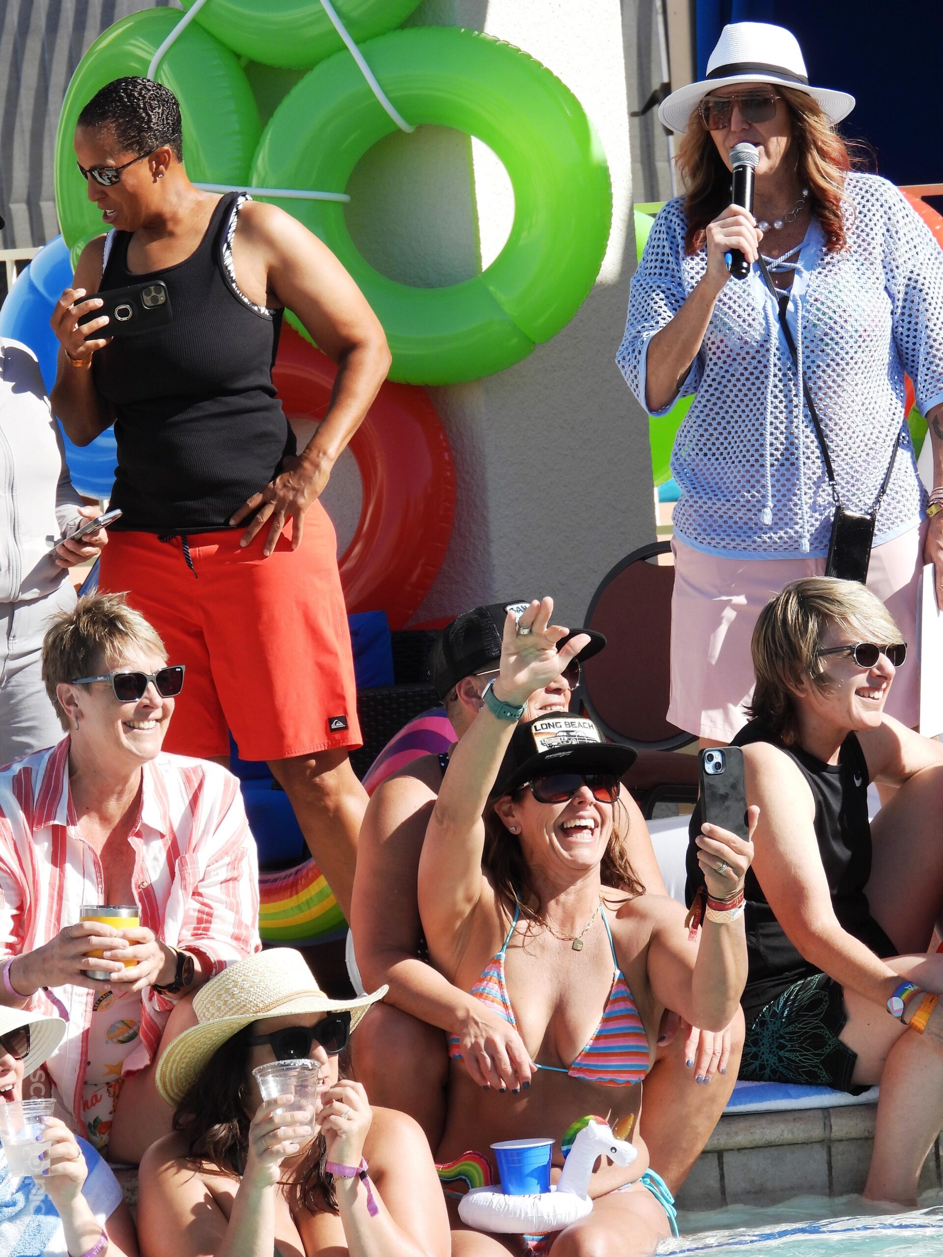 The Rubber Duck Race brought plenty of laughs, with ten contestants guiding rainbow-colored ducks across the pool. A false start kicked things off, but the second round went swimmingly, and top finishers took home prizes—while everyone got to keep their duck as a memento. The Unicorn Relay, hosted by VACAYA, was chaotic fun. Slippery inflatables made it nearly impossible to stay mounted, turning the event into more of a unicorn “drag.” It wasn’t graceful, but the determined crew made it work, and the crowd loved every minute of the hilarious spectacle.