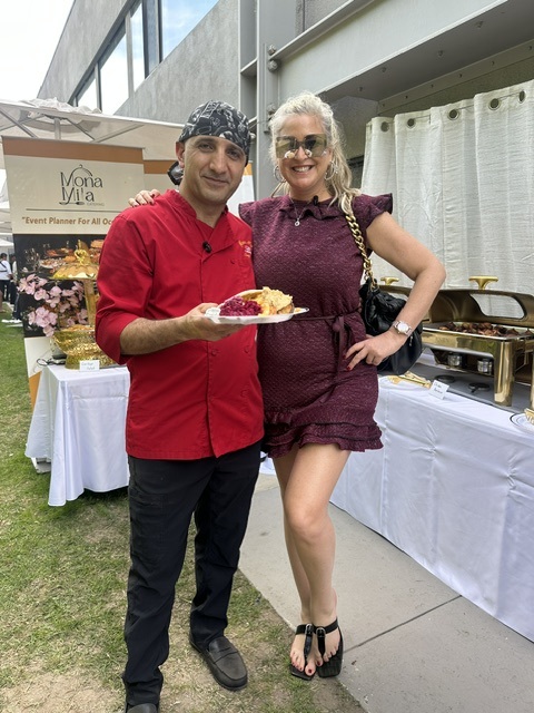 My first stop was Mona Mila Catering, and let me reveal something about myself, I am not a happy camper when I am hungry. I always my appetite for DPA gift suites because they always have the best food, drinks & cocktails. I was greeted by Handsome Armenian Chef Ara and he not only showed me what was on the menu, but he made me a Chefs plate of his Armenian cuisine. Let’s just say the food was scrumptious.