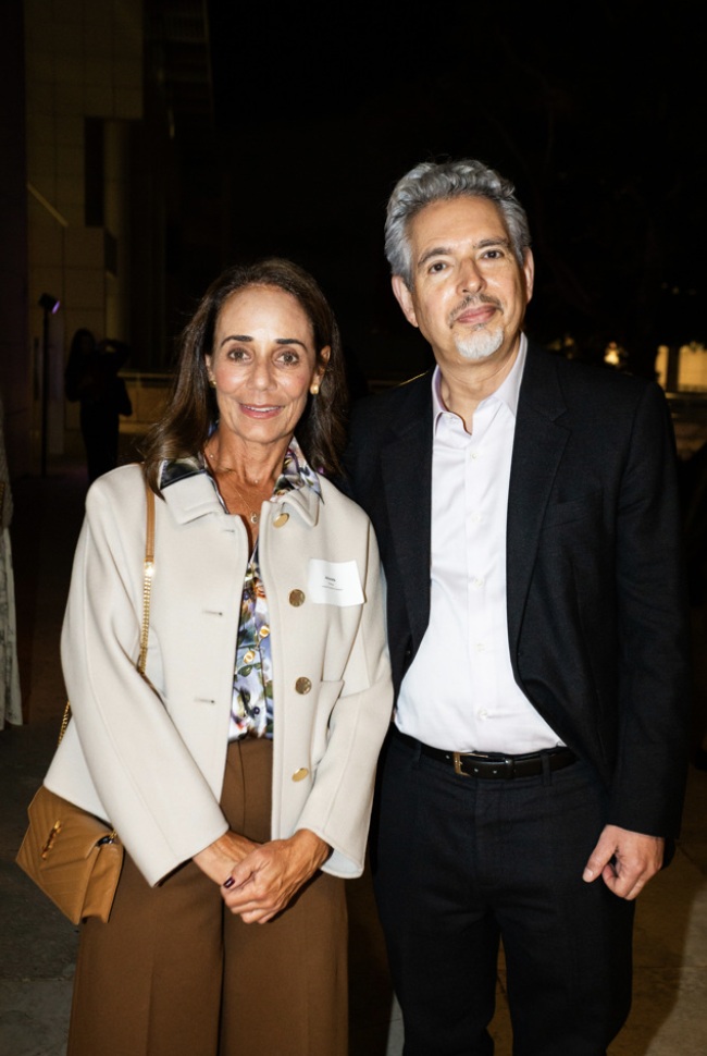Getty Trustee Antonieta M. Arango and Getty Research Institute Interim Director Andrew Perchuk at PBS SoCal’s ART & SCIENCE COLLIDE premiere at The Getty Center on October 14, 2025.