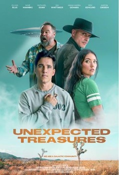 Set against the mystical backdrop of the Mojave Desert, UNEXPECTED TREASURES follows Hartley (Olivia Blue, Animal Kingdom), a down-on-her-luck desert dweller who stumbles upon Sam (two-time Emmy Award winner Mike Manning, Beyond the Gates, This is Us), a charming alien fugitive. Together, they race to outrun an alien bounty hunter, unlock ancient prophecies, and discover that true connection often comes from the most unexpected places.