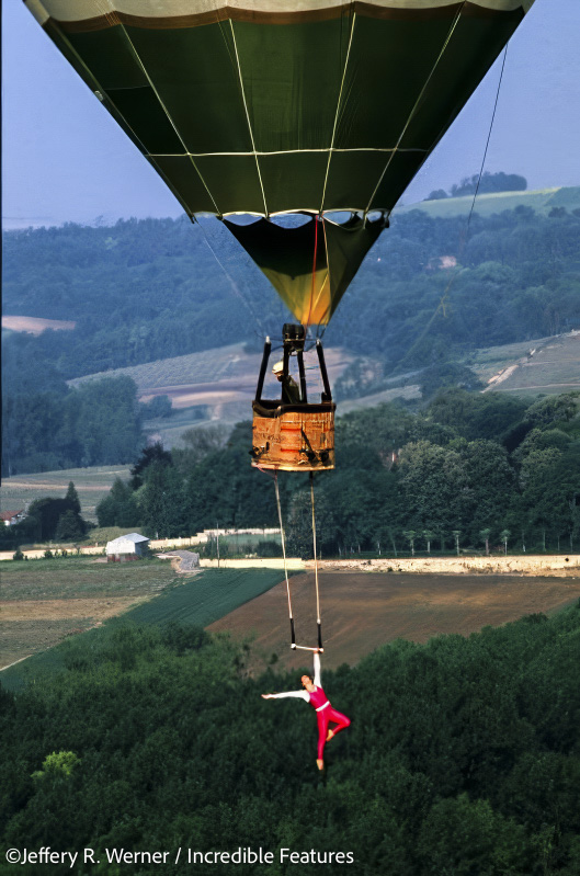 I knew Peter B. Kaplan pretty well. We met in Albuquerque when I was shooting hot air balloons. I almost tripped over him because he was taking a picture while lying on the ground. He said “That will cost you a drink!!” Thus began a long friendship. He was known to be crazy, out of his mind, but a great photographer. He did iconic pictures of the statue of Liberty from on top of the Statue of Liberty with these long poles. Also pictures of bridges, he loved heights. I was scared to death of heights but I had to get over it for a lot of the work I did of stunts. Including helicopter jobs where half my body is out of the chopper. As to influence I’m basically self-taught. What I didn’t pick up from Vince, I got by watching other photographers, or on my own. Peter didn’t go anywhere without his camera. We’d be at lunch in New York City and he’d see a homeless guy on the street and he’d take his picture.