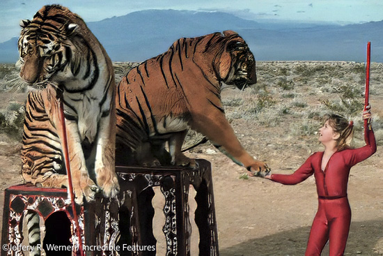 I shot the Berosini animal circus family a few times over the years, including their daughter Britte who at age 13 was the world’s youngest wild animal trainer. We’re talking full grown lions and tigers. When she was in her early 20’s she was bit by a spotted leopard, which is the shoot I was talking about earlier. The Enquirer sent me to shoot her on a Vegas stage which I did with lighting and so forth because the incident had made the news, and they thought a portrait of her with the animal would be newsworthy. But she was noticeably nervous, which I hadn’t seen before in the previous years of covering her around giant lions and tigers.