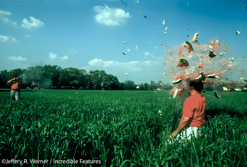 JW: Yes, and I did a whole story for a French magazine on the guy who invented the Hulcher camera. The story included my photo of a guy shooting a watermelon off his brother’s head at 65 frames per second.