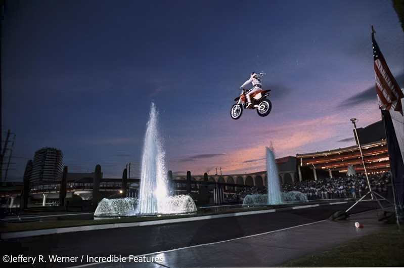 JW: I did a book on stunts and Daredevils. It’s a specialty I got into. I met a guy at a track. He invited me to Minneapolis to shoot his son who was doing this human rocket thing. That lead me to his friend Dar Robinson, the greatest stuntman ever. I shot a high-fall stunt with him in 1979 and I didn’t know what I was doing. I met his wife and kids too. A couple years later he got a contract with That’s Incredible. The early version of the show they had too many accidents, so they hired Dar to oversee all the stunt work to avoid accidents. I went to a meeting where I learned he didn’t like the other photographer who was loud and always yaking a lot. I can be quiet when I need to be.