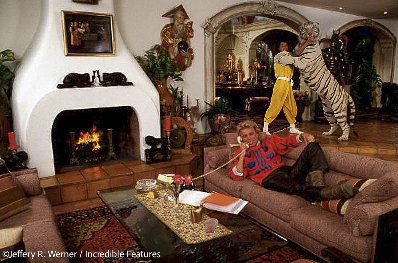 Now on my own, and living in west Los Angeles, I started to see a lot of editors at newspapers and magazines and I went to see the lady at People. Sure enough she was cold as ice. She said we don’t like teams and you are a writer and photographer team. Just then someone in the hallway said “Are you Jeff Werner, didn’t you used to work for us?” For the next several years whether in N.Y. or L.A. I heard someone on their staff say “Didn’t you used to work for us?” My career there was stagnated but I did do some more shoots for them. The L.A. bureau had five photographers at that time and the west coast photo editor liked four of them because those photographers were assholes. She believed in order to shoot celebrities you had to be a Hollywood asshole. To get celebrities to sit in a bathtub or something like that she thought you had to be an A-type. The photo editor at the time didn’t think I fit into that category, so I would not be good at shooting celebrities. Just real people stories. But in later years my mild mannered personality worked for me much more then against me, and helped me get hired by Dar Robertson for “That’s Incredible!” at ABC, and the trust of celebrities like Siegfried & Roy for their shoot at home with their White Tigers, which many Enquirer staffers told me was the best center-spread the tabloid had ever run.