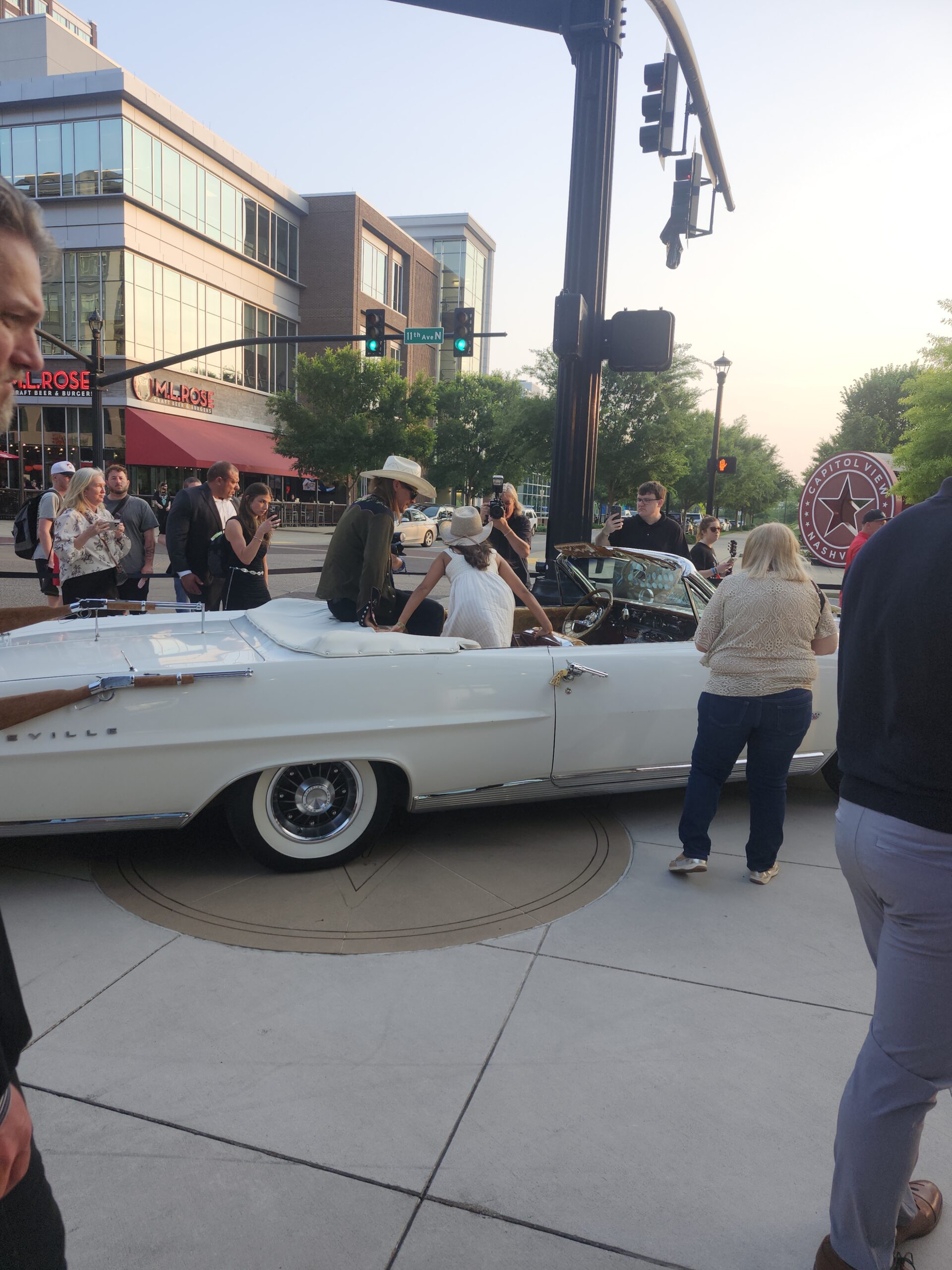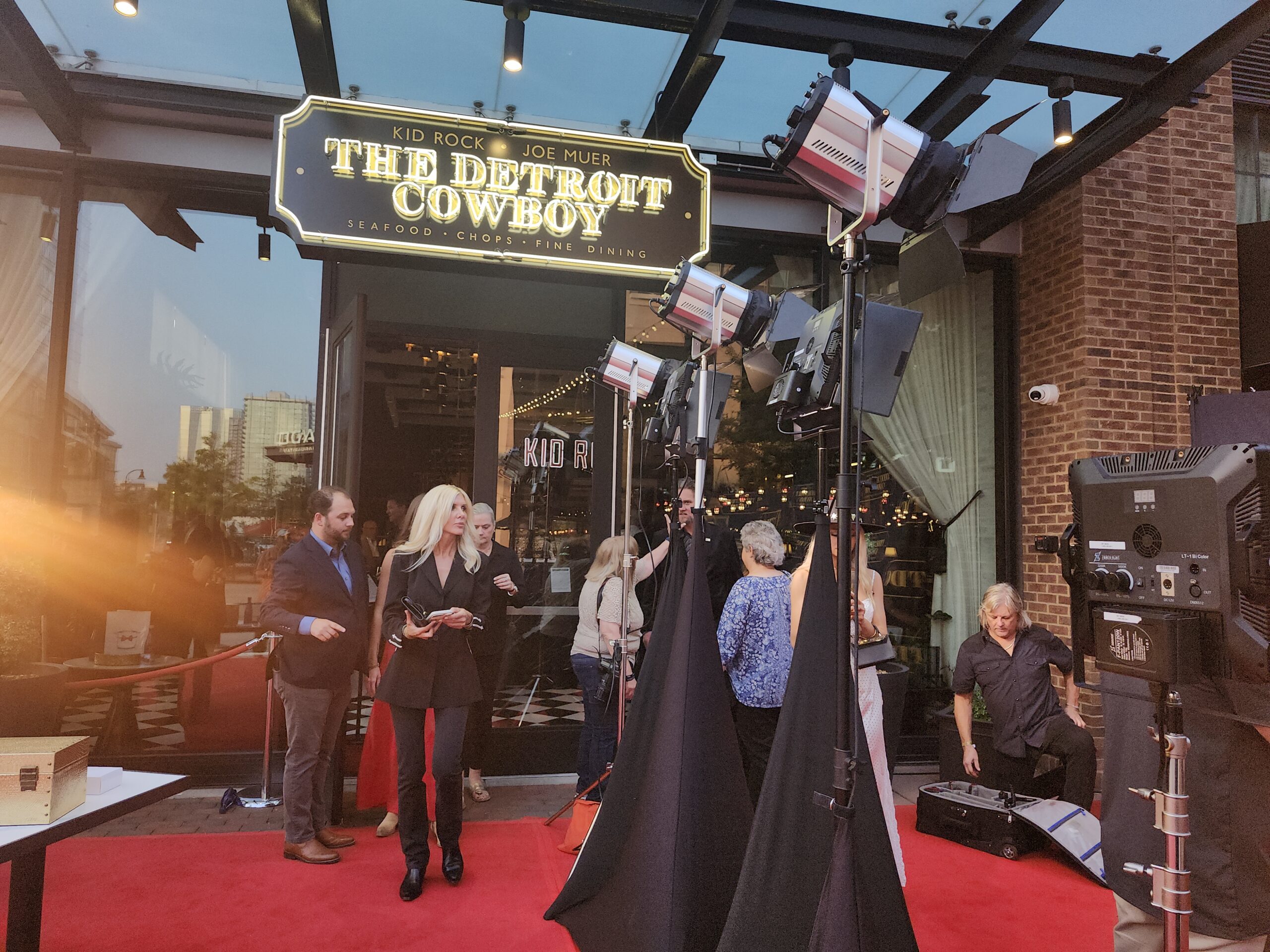 The country stars came out to walk the red carpet this past Tuesday night at The Detroit Cowboy to experience some deliciously prepared sampling of what to expect at this co-owned restaurant. The invited guest wrapped down the street to get their wristbands to go inside to experience great food and spirits. Here are some photos we took of those that gathered out front and Kid Rock and his granddaughter Skye took a few photos in the white Cadillac parked out front.