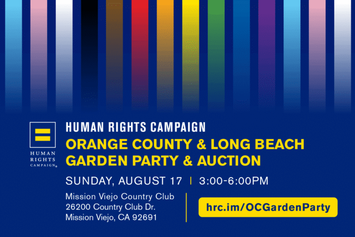 HRC‘s Orange County & Long Beach Garden Party & Auction brings together over 300 HRC members, friends, advocates and allies for an afternoon of community, connection and action, all in the name of EQUALITY and fun in the sun. The 2025 garden party will be hosted at the beautiful Mission Viejo Country Club on August 17th from 3:00pm – 6:00pm.