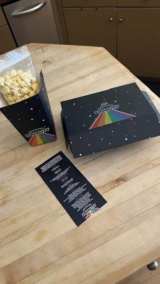 The atmosphere was energetic, warm, and unmistakably communal. Guests were greeted with popcorn to take to their seats, two complimentary drink tickets, and thoughtful touches such as candy boxes waiting at VIP seats. The event ran seamlessly from start to finish, a testament to Lambda Legal’s team and the careful production led by Emmy-nominated producer Page Hurwitz, whom we were delighted to finally meet in person during the reception.