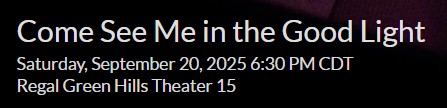 COME SEE ME IN THE GOOD LIGHT (dir. Ryan White) – An unexpectedly funny and joyful love story from Apple Original Films, following poets Andrea Gibson and Megan Falley navigate life and mortality in the face of an incurable diagnosis.