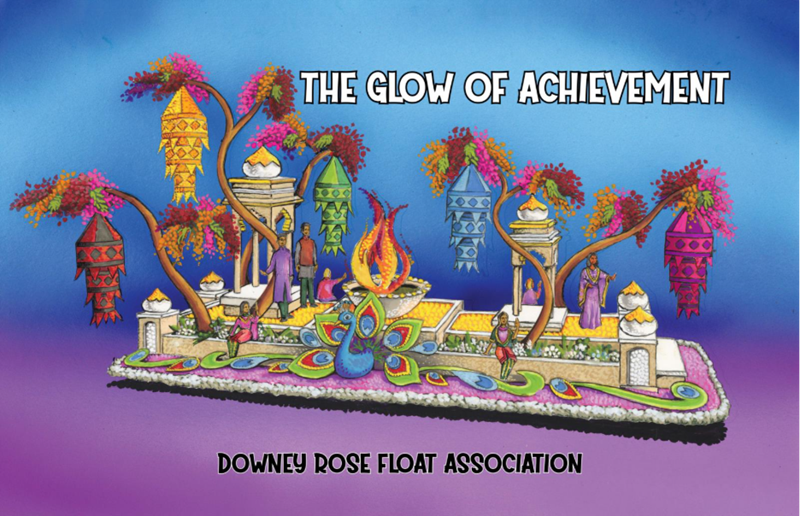The Downey Rose Float Association celebrates unity, tradition, and cultural beauty with its float “Festival of Lanterns.” Inspired by the Indian Lantern Festival, Diwali, the design showcases five radiant lanterns hanging from floral-adorned trees, symbolizing the triumph of light over darkness. At its center glows a grand Diya, an illuminated lamp representing hope and renewal, surrounded by vibrant Indian architecture and majestic peacocks stretching the length of the float. The float is filled with vibrant color, thanks to the long-lasting statice filler flower, orange Mokara orchids, orange fire opals, light pink daylilies, pink roses, and hot pink orchids for layers of warm, floral tones. The torch flame, symbolizing an everlasting candle, will glow with gold marigolds, white sweet rice, and yellow button mums. Below the flame, the base will reflect the essence of water through blue and white iris and clusters of blue and white hydrangeas. Created by volunteers through Downey’s long-standing community spirit, this self-built entry captures “The Magic in Teamwork” through artistry, collaboration and the celebration of cultural connection.