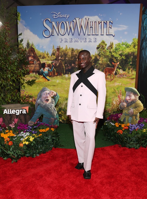 LOS ANGELES, CALIFORNIA – MARCH 15: Idris Kargbo joins Sneezy & Sleepy at the Allegra activation on the red carpet for Disney’s “Snow White” premiere at El Capitan Theatre on March 15, 2025 in Hollywood, California. The Allegra activation asks what Sneezy and Sleepy would be like if they weren’t sneezy or sleepy. (Photo by Phillip Faraone/Getty Images for Allegra)