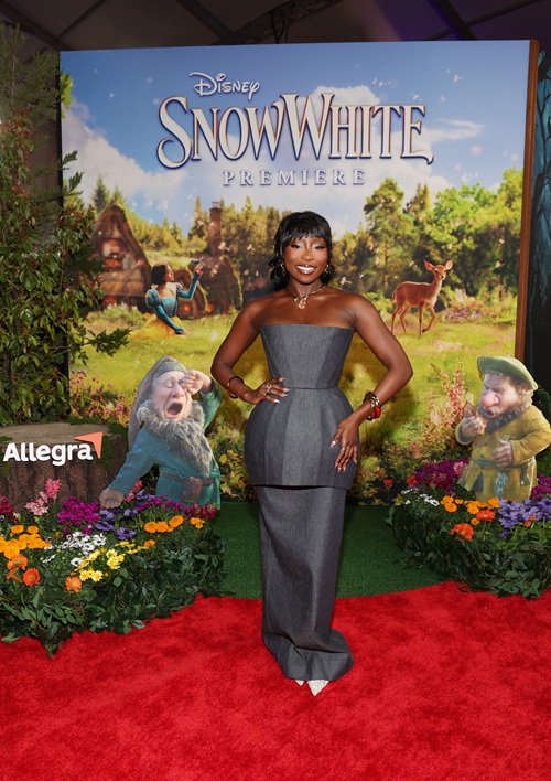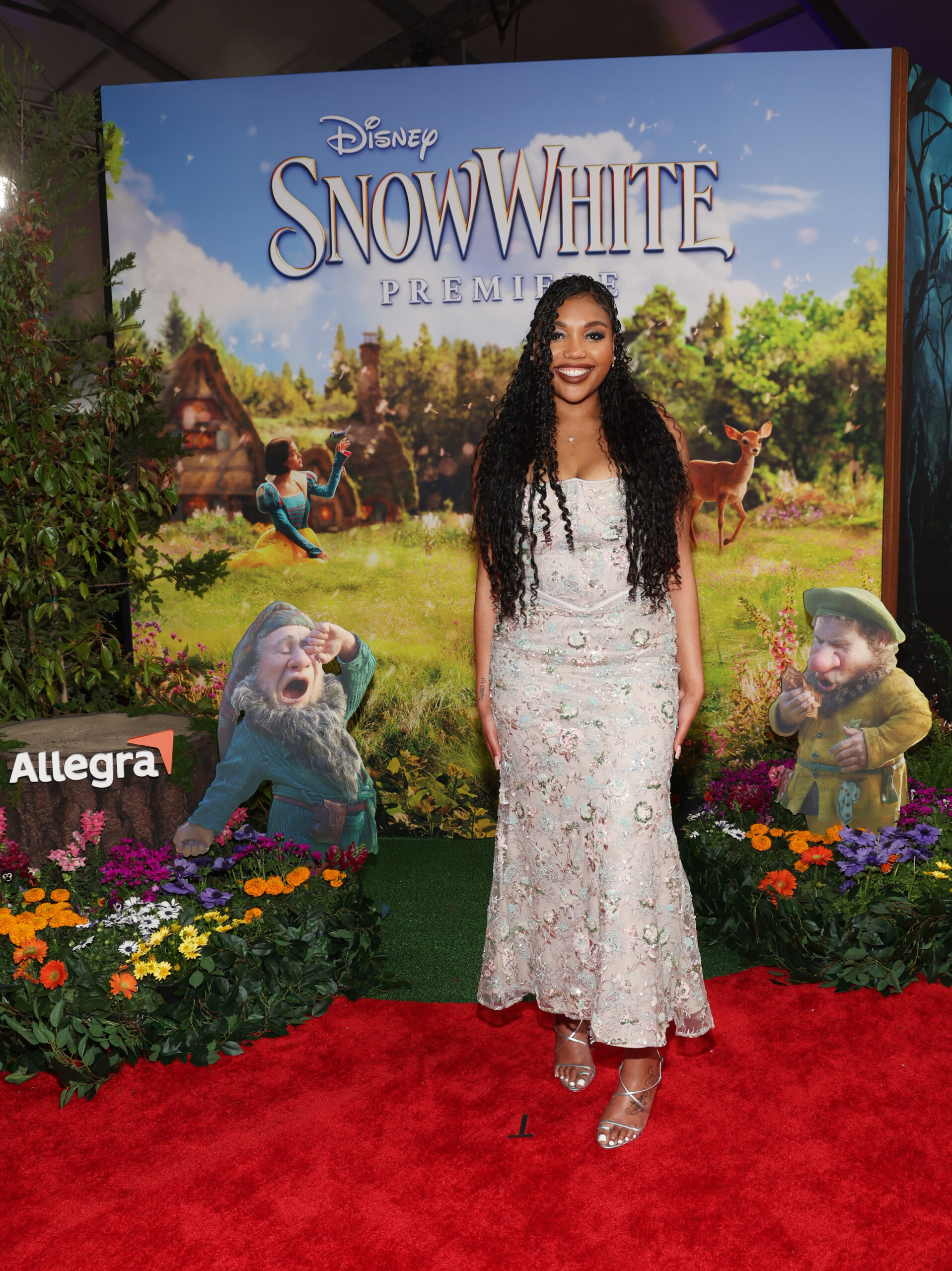 LOS ANGELES, CALIFORNIA – MARCH 15: Sy’Rai Smith joins Sneezy & Sleepy at the Allegra activation on the red carpet for Disney’s “Snow White” premiere at El Capitan Theatre on March 15, 2025 in Hollywood, California. The Allegra activation asks what Sneezy and Sleepy would be like if they weren’t sneezy or sleepy. (Photo by Phillip Faraone/Getty Images for Allegra)