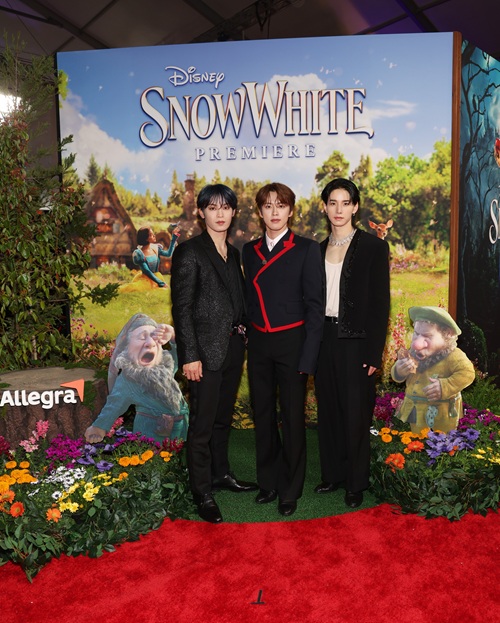 LOS ANGELES, CALIFORNIA – MARCH 15: Jo1 joins Sneezy & Sleepy at the Allegra activation on the red carpet for Disney’s “Snow White” premiere at El Capitan Theatre on March 15, 2025 in Hollywood, California. The Allegra activation asks what Sneezy and Sleepy would be like if they weren’t sneezy or sleepy. (Photo by Phillip Faraone/Getty Images for Allegra)