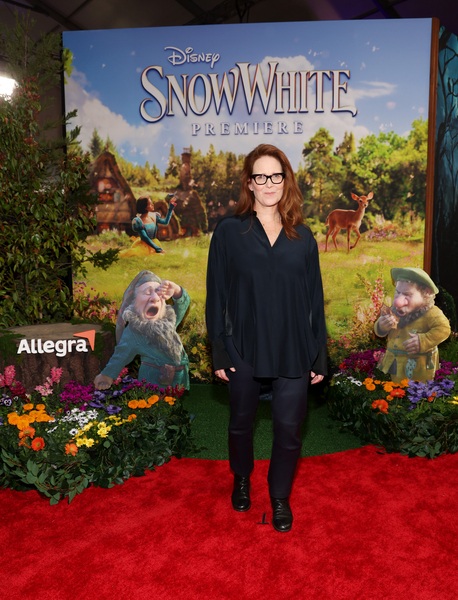 LOS ANGELES, CALIFORNIA – MARCH 15: Erin Cressida Wilson joins Sneezy & Sleepy at the Allegra activation on the red carpet for Disney’s “Snow White” premiere at El Capitan Theatre on March 15, 2025 in Hollywood, California. The Allegra activation asks what Sneezy and Sleepy would be like if they weren’t sneezy or sleepy. (Photo by Phillip Faraone/Getty Images for Allegra)