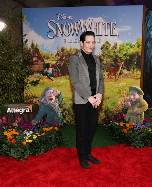 LOS ANGELES, CALIFORNIA – MARCH 15: David Dastmalchian joins Sneezy & Sleepy at the Allegra activation on the red carpet for Disney’s “Snow White” premiere at El Capitan Theatre on March 15, 2025 in Hollywood, California. The Allegra activation asks what Sneezy and Sleepy would be like if they weren’t sneezy or sleepy. (Photo by Phillip Faraone/Getty Images for Allegra)