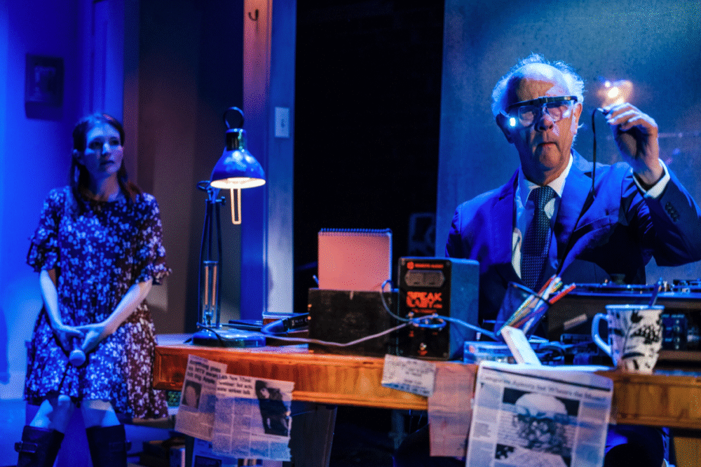 Los Angeles, CA (The Hollywood Times) 7/21/25 – Opening with the Rogue Machine at the Matrix Theatre in West Hollywood on Friday, June 18, was a play written by John Kovenbach – Reel to Reel. A co-production with HorseChart Theatre, this fascinating 90-mintue play explores a 55-year marriage of Maggie and Walter through a collage of memories, sounds, and moments. Directed by Matt McCray, the story unfolds non-linearly, as it follows Maggie and Walter at three different ages: 27, 42, and 82. Appropriately titled Reel to Reel, the play focuses on the relationship between sound and memory. The play features a unique theatrical experience where actors create all the sounds live on stage, providing a foley backdrop and exploring how memory and love are shaped by sounds.