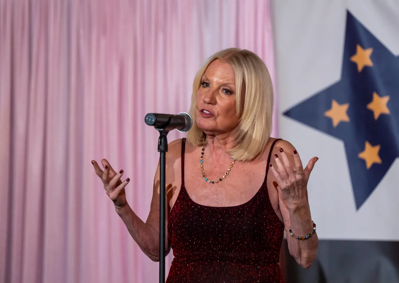 Event organizer and host Daphne Barak speaks about the importance of cancer research during the third annual Starry Starry Night Gala at Chaparral Country Club in Palm Desert, Calif., Saturday, Jan. 31, 2026.