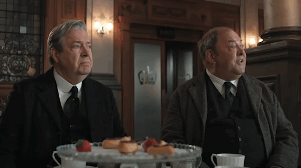 German composers such as Bach, Beethoven and Handel being unacceptable, Dr. Guthrie proposes to his ragtag crew of amateurs a radical new production of English composer Edward Elgar’s oratorio “The Dream of Gerontius,” its theme of death being the more heart-wrenching in the circumstances. He gets permission from Elgar (Simon Russell Beale) himself for this performance, though not his daringly interpretive new variations. But things change as Dr. Guthrie decides to make some changes in the score to better reflect the gruesome reality of English deaths in the trench warfare in Flanders.
