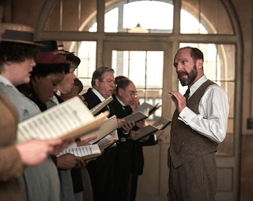 The Choral’s ambitious committee, headed by factory owner Mr. Fyton (Mark Addy) is determined to press ahead, and decides to recruit local young males to swell their ranks. They must also engage a new chorus master, and despite their suspicions that he has something to hide, their best bet seems to be Dr. Henry Guthrie (Ralph Fiennes) – driven, uncompromising, and recently returned from a career in Germany.