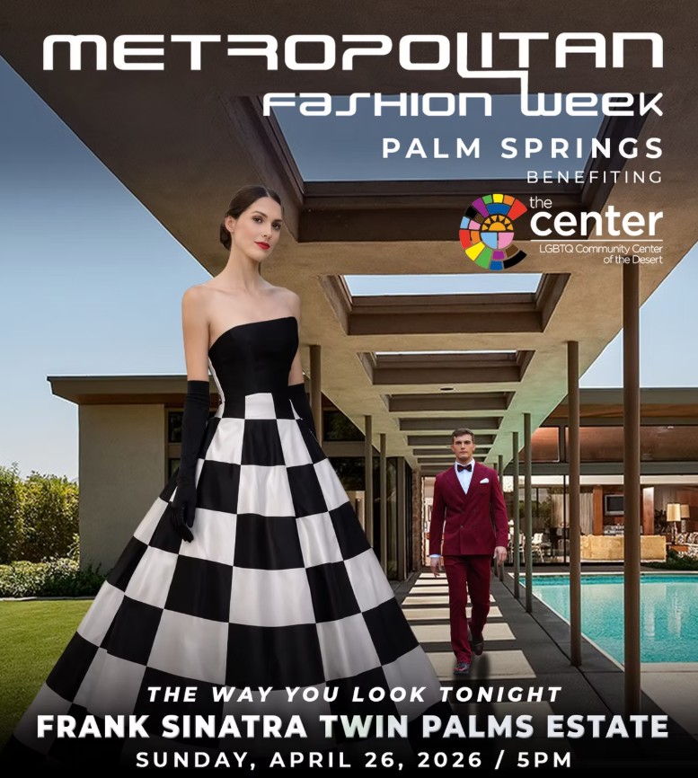 Metropolitan Fashion Week proudly announces its much-anticipated Palm Springs edition, taking place on Sunday, April 26, 2026, at the iconic Frank Sinatra Twin Palms Estate (1145 E Vía Colusa, Palm Springs, CA). The event will benefit The LGBTQ Community Center of the Desert The Center, uniting fashion, art, and philanthropy in a landmark Mid-Century Modern setting.