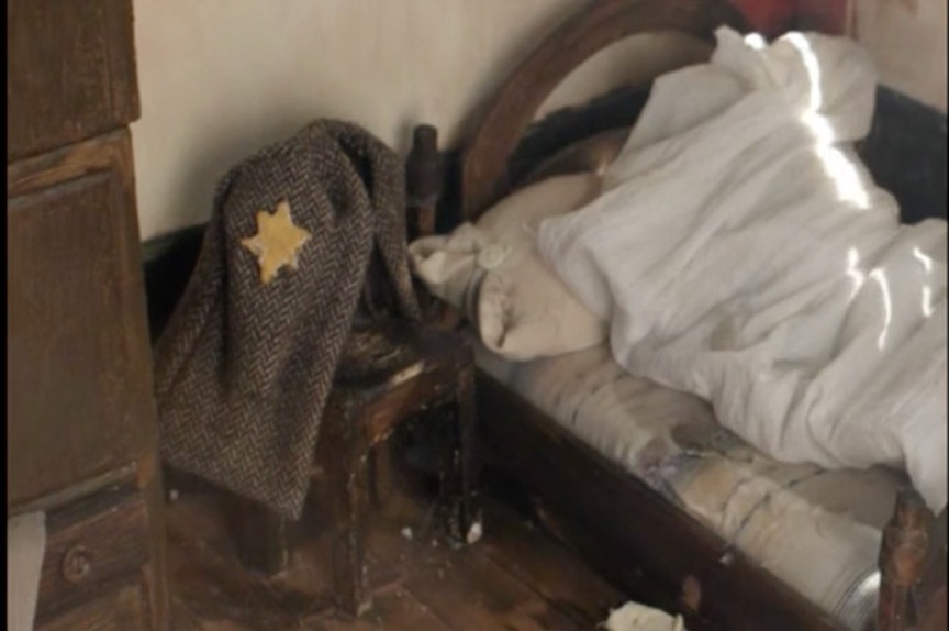 Soon, the quiet unraveling of normal life appears. In a subtle but chilling moment, the child’s simple jacket transforms with the appearance of the yellow “Jude” star. What had once been ordinary clothing becomes a forced mark of identity, signaling the beginning of the ghetto period and the quiet unraveling of normal life.