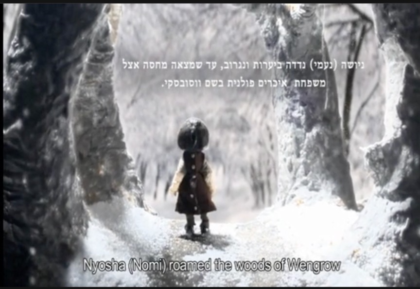 The film opens with the voice of Holocaust survivor Nomi Kapel, speaking in Hebrew as subtitles display her recorded testimony across the screen. Her maiden name—Agraphski or Grabski—is uncertain, reflecting how much trauma impacted her original world and childhood history. She begins telling a story from 1942, when she was ten years old.