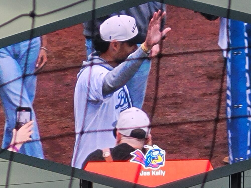 To throw out the first pitch, the Tower Buzzers had another Dodger legend on hand: former Spanish radio broadcaster Jamie Jarrin. Catching the first pitch was another memorable former Dodger: relief pitcher Joe Kelly. Having all these Dodgers legends really was a hit with Ontario’s Dodger fan base and a reminder of how former Dodger players are still remembered and revered by the fans long after their career ends.