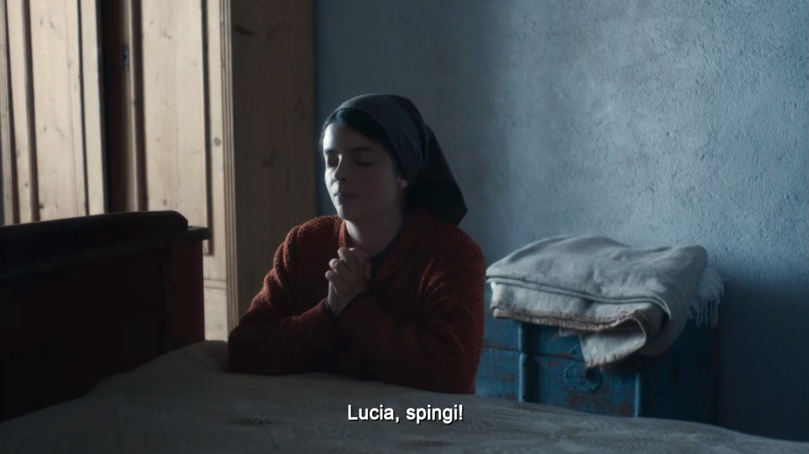 While other relationships are outlined – eldest son Dino (Patrick Gardner) is surly and resentful toward his father, flirtatious neighbor Virginia (Carlotta Gamba) causes a flutter of sexual confusion – focus is pulled gradually onto Caesar’s daughters. There’s Flavia (Anna Thaler), the smart one who is destined to win the only chance for a proper education that the family can afford. There’s Ada (Rachele Potrich) the strange, dark one with her notebook full of self-devised atonements for the sinful times she sneaks behind the wardrobe door to touch herself. And there’s pretty Lucia falling for Pietro (Giuseppe De Domenico), a soulful-eyed soldier from Sicily who saved her uncle’s life and then deserted with him to hide out in the village.